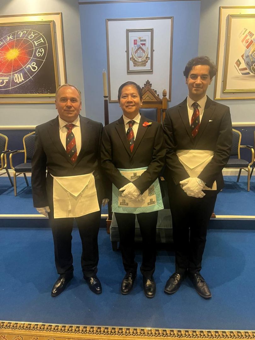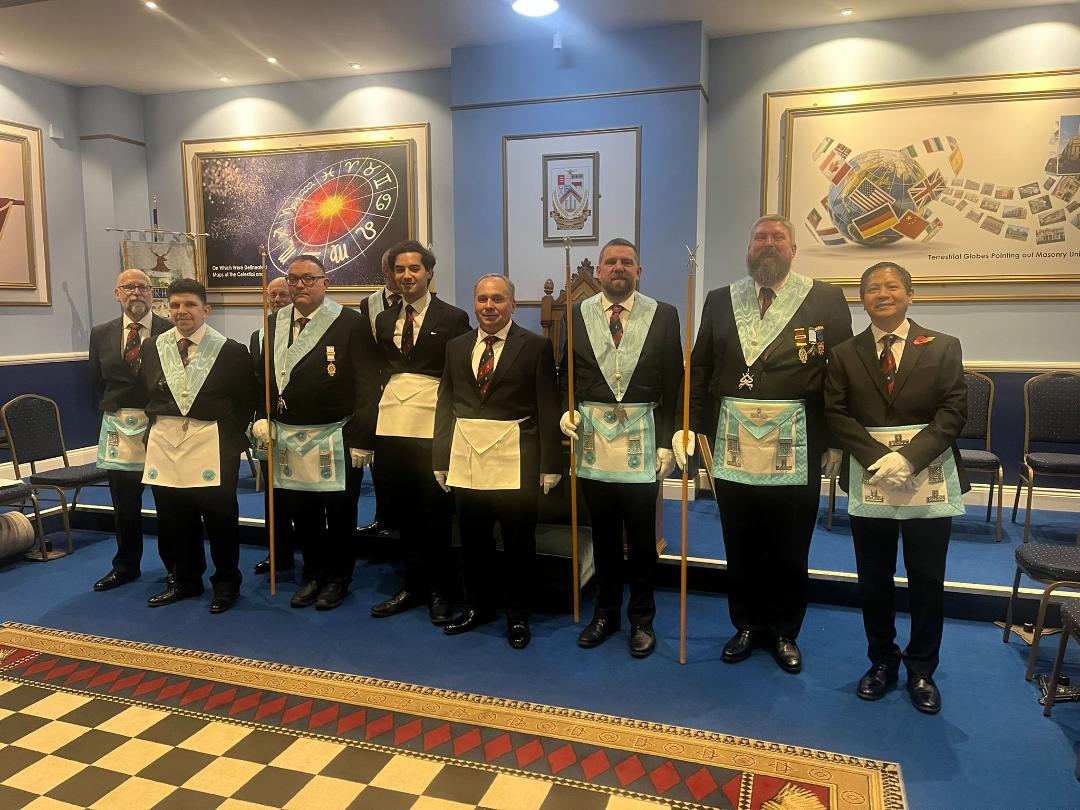 On Thursday 13th November the Lodge carried out a Double Initiation ceremony which was the 2nd such ceremony in 2025 and was a fitting end to a very successful and full ceremonial year. In a very “International” ceremony, Worshipful Master Daniel Macalanda (originally from the Philippines), ably assisted by his team of Officers, initiated Bro Adam Qaseem Repa (originally from Poland) and Bro Vasile Florin Lungu (originally from Romania). The ceremony was carried out in a very sincere and correct manner making it a special and memorable day for Bro Adam and Bro Vasile, who no doubt will be friends for many years to come.